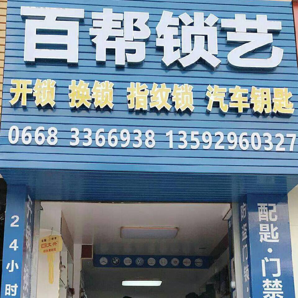 茂名百帮锁艺电话:13380803077,是本地一家公安局备案、工商局注册的专业开锁公司,专业从事:茂名开锁,茂名换锁芯,换各种指纹锁,汽车开锁,各种车库门遥控器,汽车遥控器,专配疑难钥匙。长期以来得到各小区物业和业主的认可,价格合理,公道,服务热情,只要你一个电话,就会以最快的速度到达,解你燃眉之急,因为专业,“锁”以放心。 自成立以来一直坚持服务至上,诚信为本的经营理念,赢得客户的支持与信赖,只要您一个电话我们保证开锁立即到位,为您解忧。 服务项目: ★开修换各式保险柜...